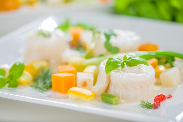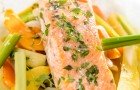 7. Liec tvaicēt zivs rullīšus, tvaicēšanai izmantojot ūdeni, kurā vārījās dārzeņi.