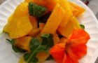 Nomizojiet apelsīnu un sagrieziet plānās šķēlītēs. Tāpat plānās šķēlītēs sagrieziet arī fenheli un sīpolu. Lielā bļodā kārtās izvietojiet sastāvdaļas. Sajauciet etiķi un eļļu, pievienojiet garšvielas un pārlejiet mērci salātiem. Rotājiet ar melnajām olīvām un sakapātiem lociņiem.