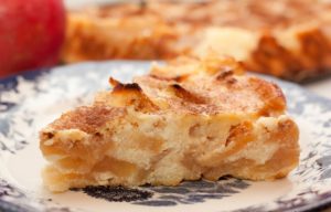 3. Lielā bļodā saputo olas, pievieno cukuru, biezpienu, krējumu, mannu, vaniļu un šķipsniņu sāls. Kārtīgi samaisa un pārlej pāri āboliem.
