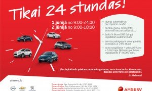 Šī gada 1. un 2. jūnijā Amserv grupas Opel, Chevrolet, Peugeot autocentros notiks kārtējā 24 stundu pārdošanas akcija, kas ir piemērotākais laiks jaunu un mazlietotu automašīnu, servisa pakalpojumu un oriģinālo rezerves daļu iegādei….