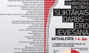 Neapšaubāmi, aizejošā Valda Dombrovska valdība Latvijas iedzīvotāju atmiņā paliks kā valdība, kas ieviesa eiro. «Diemžēl,» piebildīs daudzi, jo tieši eiro ieviešana iedzīvotāju aptaujā visbiežāk tiek minēta kā V. Dombrovska valdības sliktais darbs. 4,9%…