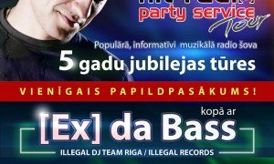 Sensācija! Populārā Latvijas dīdžeja un producenta [Ex] da Bass radio šovs ”Party Service”, kas radio viļņos dzirdams katru piektdienas un sestdienas vakaru, izsludina 5.gadu jubilejas tūres VIENĪGO PAPILDPASĀKUMU! Tas 7.aprīlī notiks vienā no…