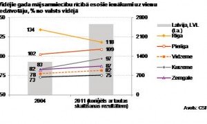 Strauja ekonomikas izaugsme 2011-2012.g. veicināja mājsaimniecību ienākumu kāpumu, tomēr tas nebija vienmērīgs Latvijas reģionu starpā. Ienākumu nevienlīdzība starp reģioniem saglabājas, turklāt izskatās, ka pērn kopējie mājsaimniecību ienākumi auga lēnāk tieši mazāk attīstītos reģionos….