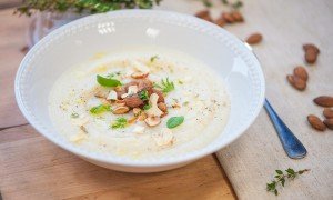 Nepieciešams: Ziedkāposts – ½ gab. Topinambūrs – 500 g Puravs – 1 gab. Grauzdētas mandeles – 1 sauja Ķiploks – 2 daiviņas Svaigais čili – aptuveni 1cm Sīpols – 1 gab. Olīveļļa –…