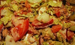 Sastāvdaļas 1 bundžiņa tunča savā sulā vai eļļā svaigs gurķis 200 g zaļie zirnīši 2 – 3 vārītas olas neliels ķinas kāposts vai puse no lielā sāls pēc garšas majonēze Pagatavošana: 15 min….